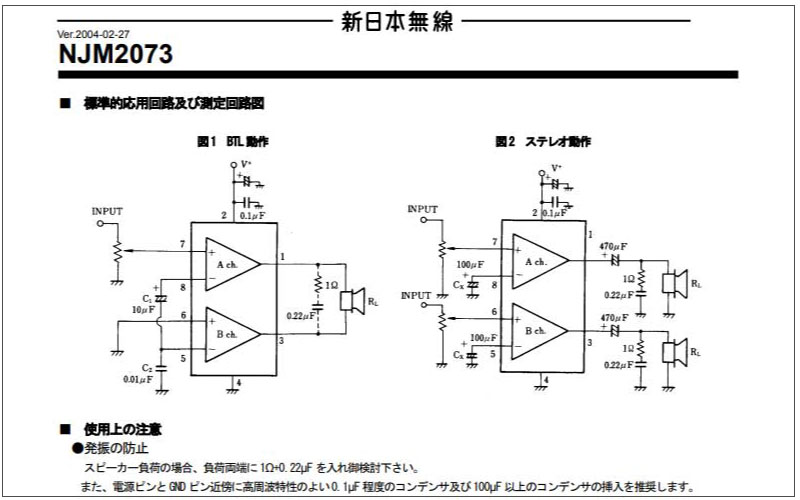M2073は、少ない部品でステレオアンプを作ることができ、
