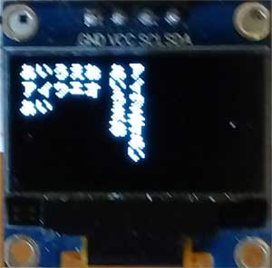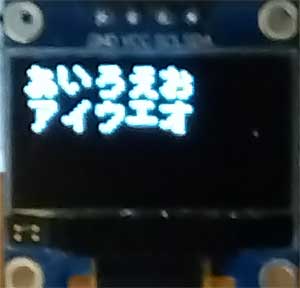oled.show()これで大きい16×16 fontのカタカナひらがなが表示されます。